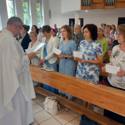 23. 8. 2025 boli do spoločenstva počas sv. omše prijatí 8 noví členovia. Bohu vďaka za nich, aj za všetkých našich členov, ktorí sa na stretnutí zúčastnili, ale aj za tých, ktorým to choroba a iné ťažkosti neumožnili prísť, pamätali sme na nich v modlitbách.